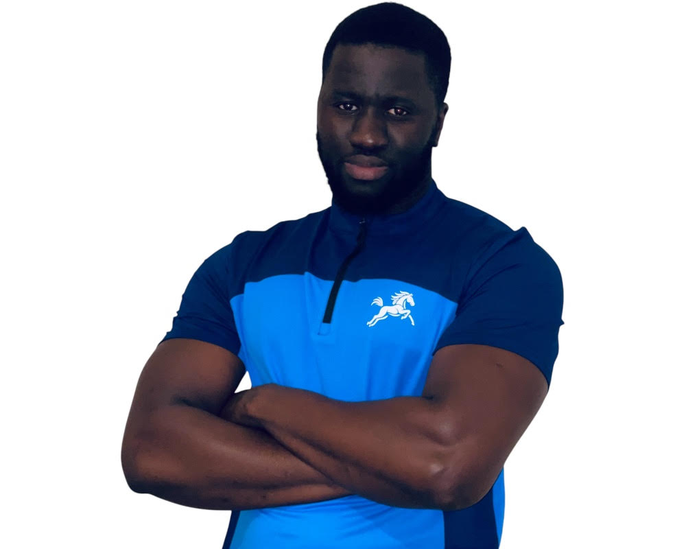 🔹 Design : Coupe ajustée avec un coloris bicolore bleu et noir, sublimé par un logo cheval stylisé.